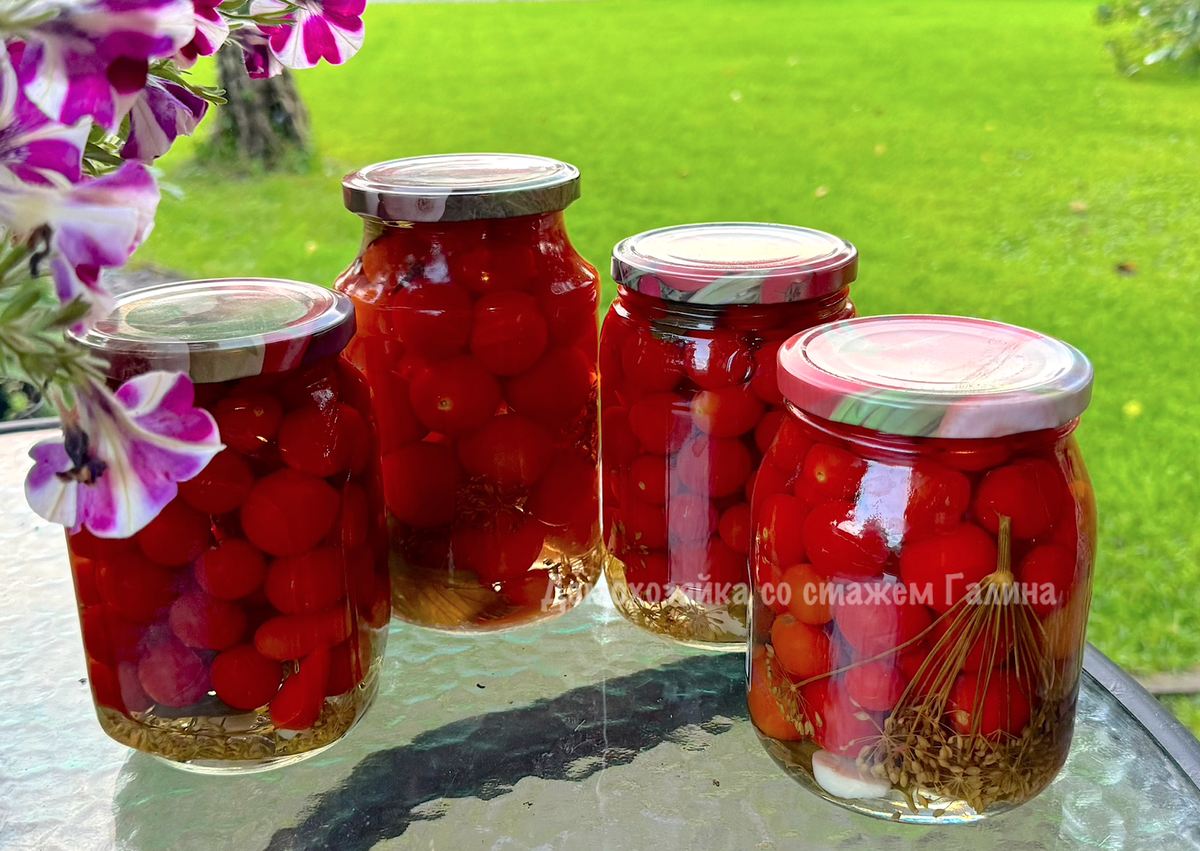 Интересная деталь: на одну банку вместимостью 720 мл необходимо примерно 400 г помидоров черри и 350 мл маринада. Позаботьтесь о том, чтобы хранить заготовки в прохладном месте — это залог их долгого хранения.