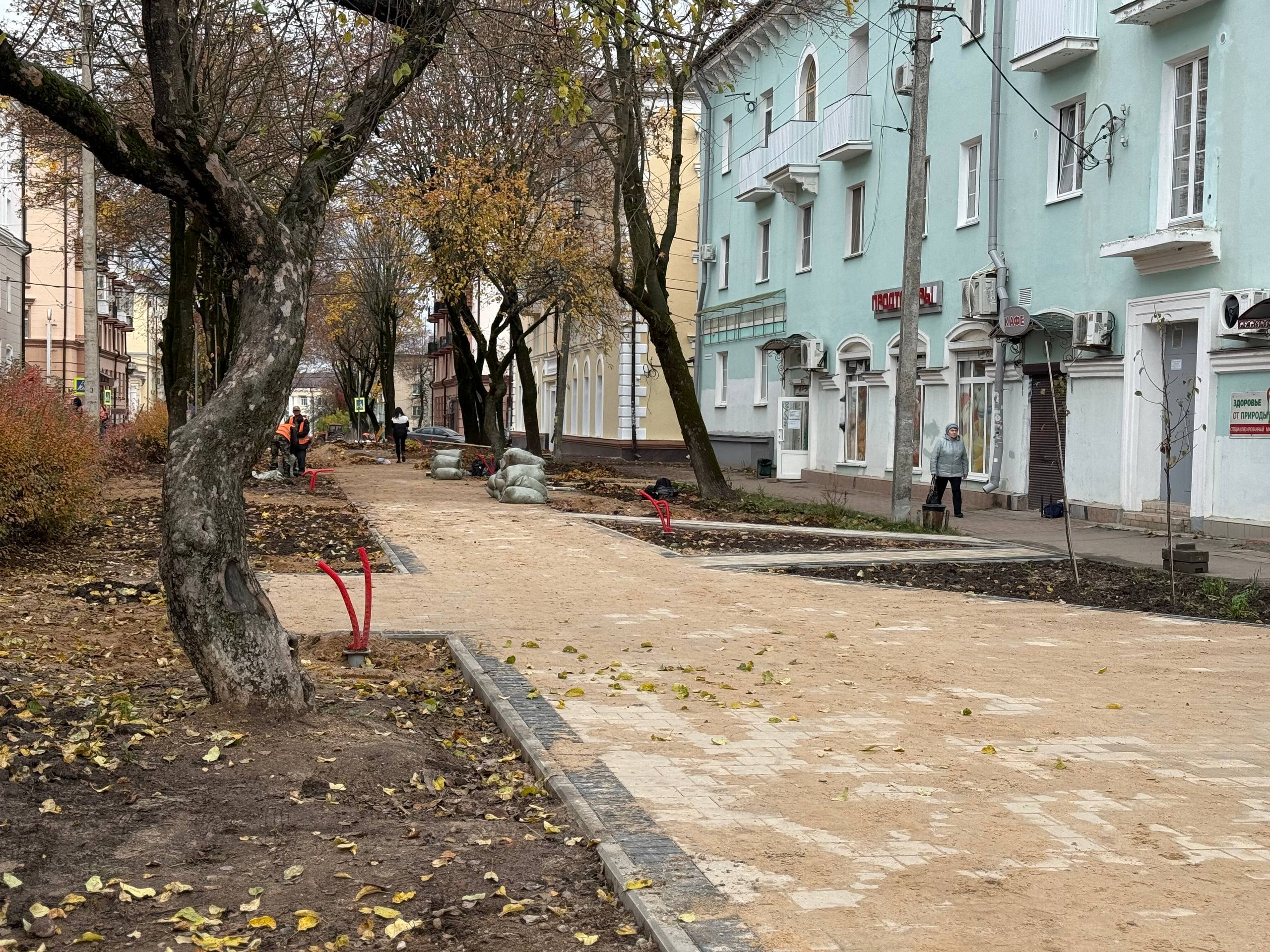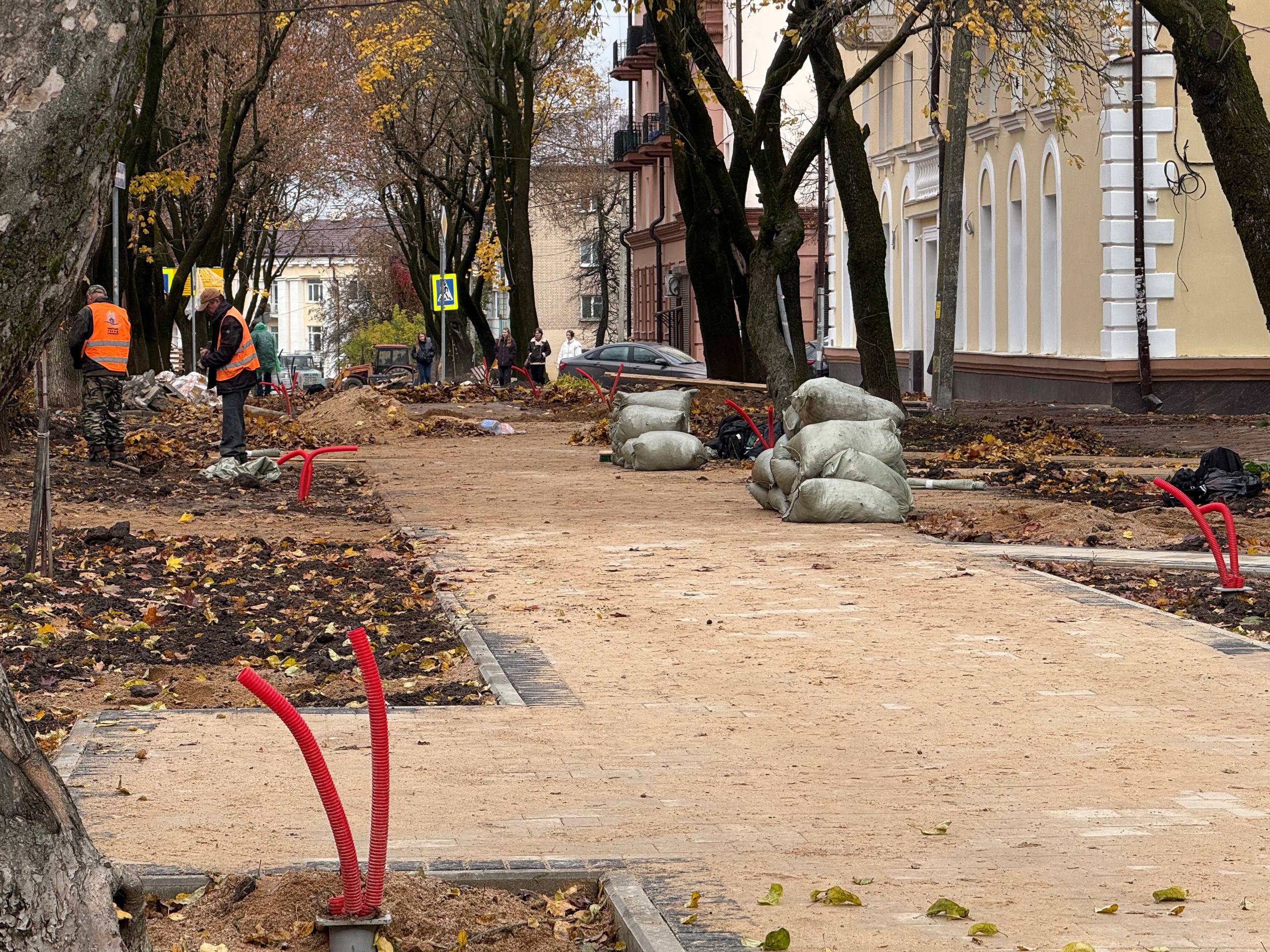 Это сложный многоэтапный проект: сначала здесь был выполнен ремонт всех инженерных сетей, и только после этого началось создание полноценного общественного пространства – с пешеходными дорожками, освещением, лавочками, урнами и озеленением. Параллельно на проезжей части «Смоленскавтодор» выполняет укладку нового асфальта.