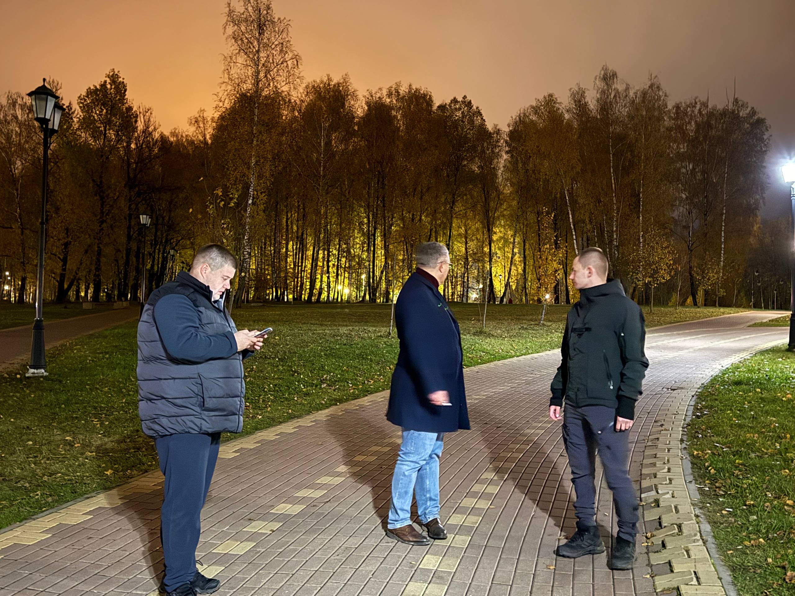 Начали, можно сказать, «удачно» — с парка «Соловьиная роща». Там не горит целый ряд фонарей: вдоль пешеходной дорожки, вокруг сцены и частично по всему парку. Такие вопросы должны решаться оперативно, поэтому сразу отправил информацию руководителю Дирекции парков.