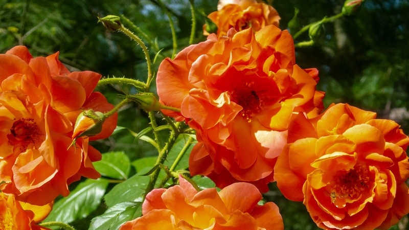 Выбор сортов для розария зависит не только от цветовой гаммы, но и от времени цветения. Одним из достойных вариантов является флорибунда сорта Orange Meilove. Эта роза радует глаз яркими оранжевыми цветами, которые постепенно переходят в нежный лососевый оттенок. В роли компаньона выступает чайно-гибридная роза Black Bakkara, создавая контраст и дополняя композицию.