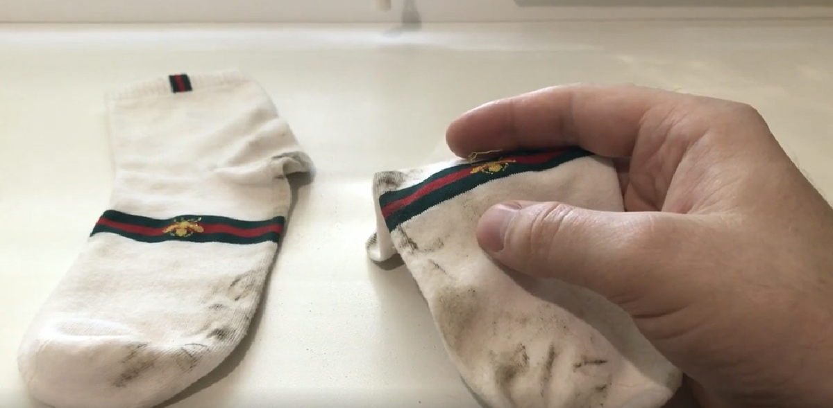 Для начала потребуется тазик с теплой водой. Затем, необходимо взять хозяйственное мыло и тщательно намылить носки или другие загрязненные изделия. Процесс очищения будет проходить руками, что сделает его более щадящим для ткани.