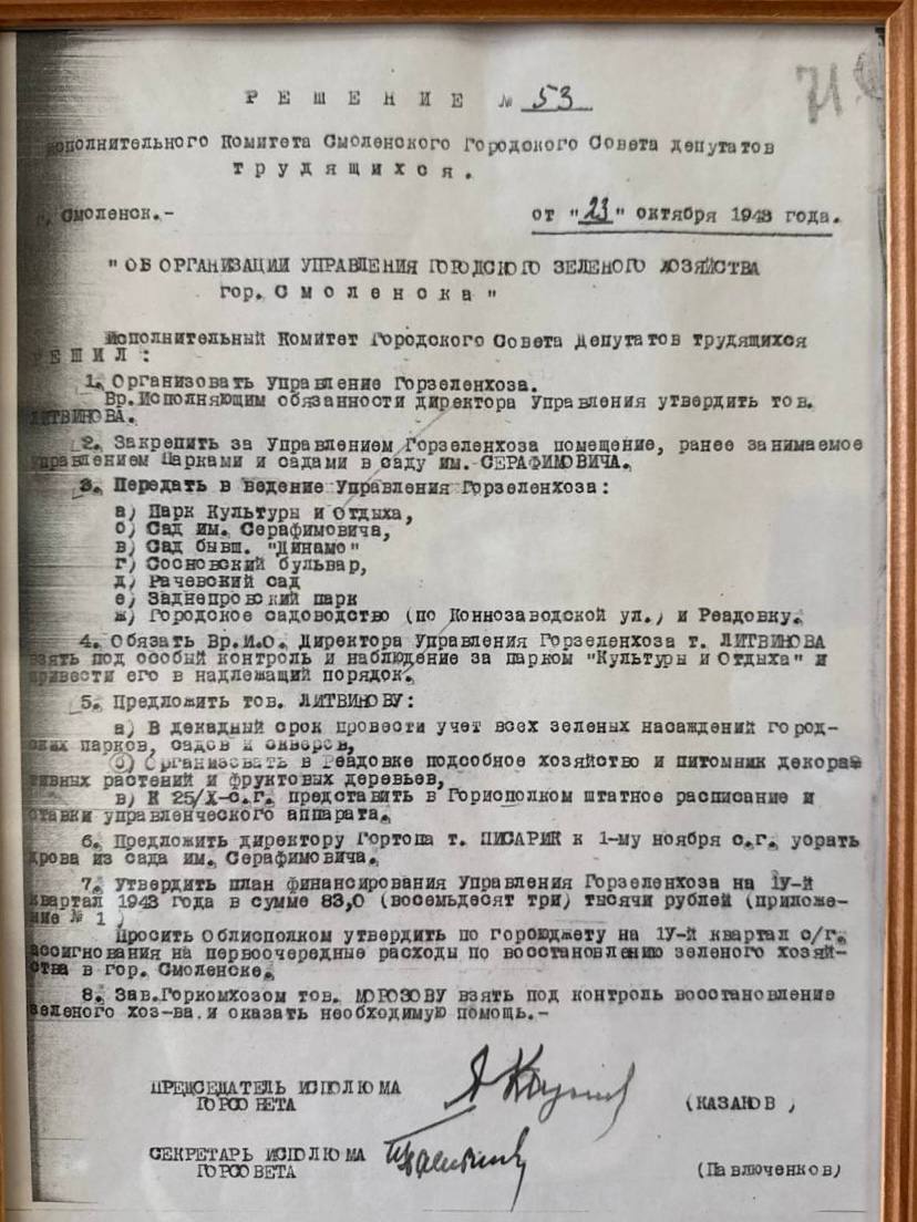 Ровно 82 года назад было принято решение создать в Смоленске специализированную организацию, которой предстояло заботиться о парках, скверах и зеленых зонах города. Так началась история муниципального учреждения «Зеленстрой», чей труд уже более восьми десятилетий остается неотъемлемой частью облика нашего города.