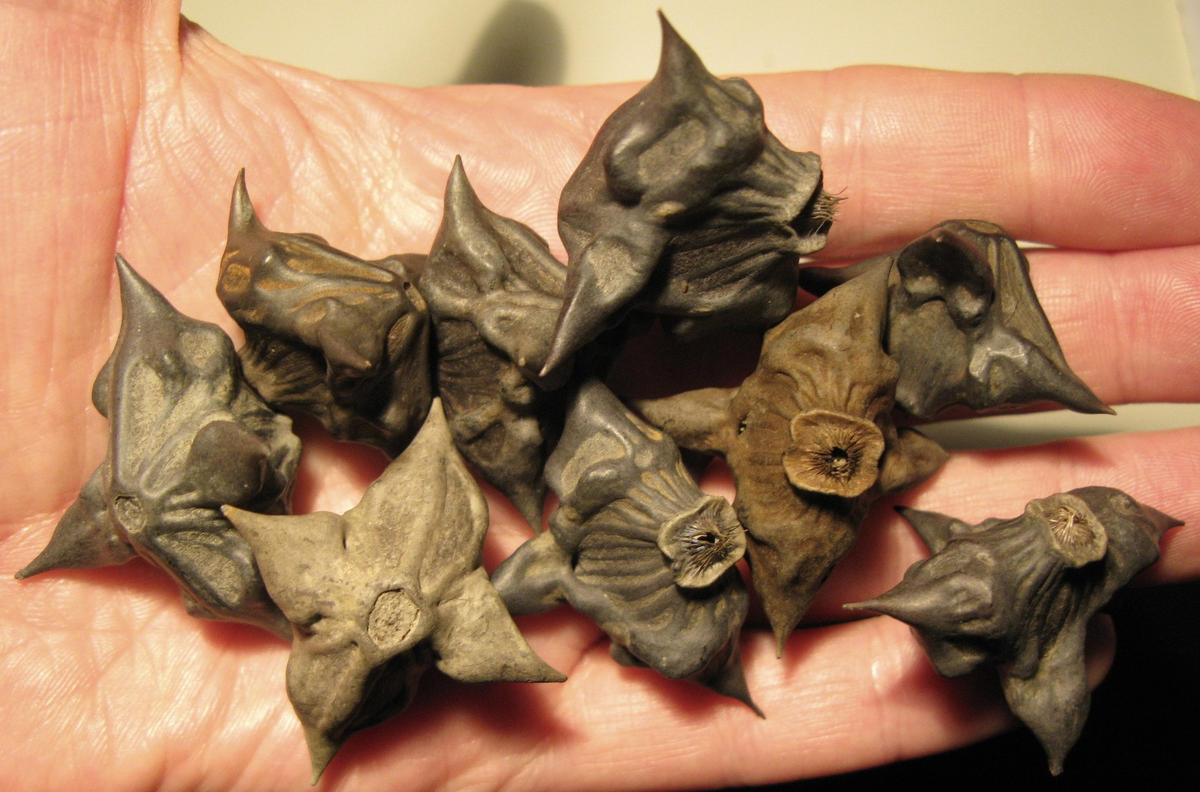Если кто-то из вас когда-то наступал в воде на твердую поверхность и испытывал болезненный дискомфорт — вероятно, это был плод водяного ореха. Чилим имеет характерную форму, напоминающую миниатюрную бычью голову с острыми рогами. Это реликтовое растение, которое якобы помнит мамонтов, можно оставить как сувенир. В Алтае практикуют сохранять такие находки. Если вам повезло обнаружить несколько плодов, попробуйте запустить их в чистый илистый водоем — возможно, это станет началом новой плантации!