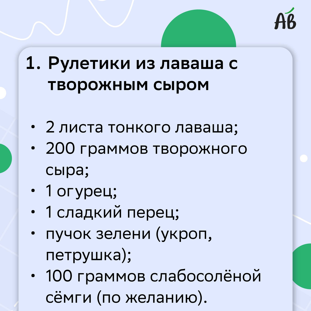 - Приготовление: Нарежьте овощи соломкой, смажьте лаваш творожным сыром, выложите начинку и сверните в рулет. Оставьте в холодильнике на 30 минут, затем нарежьте на кусочки.
