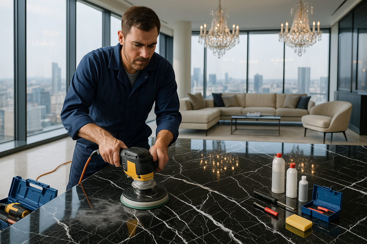 Проблема водных разводов на черном мраморе — это настоящая головная боль для владельцев элитных интерьеров. Влага, оставшаяся на поверхности, образует некрасивые, заметные следы, которые портят эстетичный вид натурального камня. Часто невнимательность в уходе может стать причиной не только ухудшения внешнего вида, но и внутренних повреждений материала. Если не принять меры, серьезная реставрация может потребоваться намного раньше, чем предполагается. Но существуют проверенные методы, которые помогут восстановить блеск и красоту мрамора, не нанеся ему вреда.