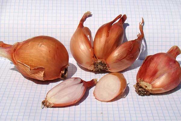 - Шалот характеризуется длинными сочными листьями и более мягким вкусом, который не вызывает слёз при нарезке.