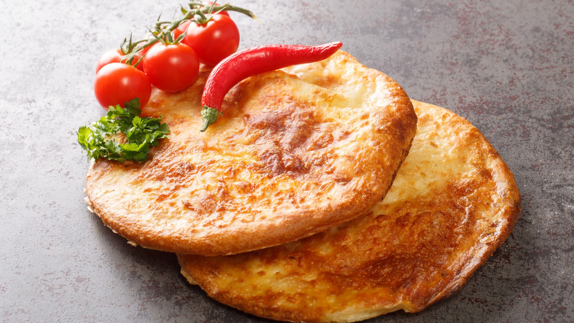 Сначала обжаривайте под крышкой, затем аккуратно переверните лепешку, снимите крышку и жарьте без крышки. Процесс в общей сложности займет 10-12 минут.