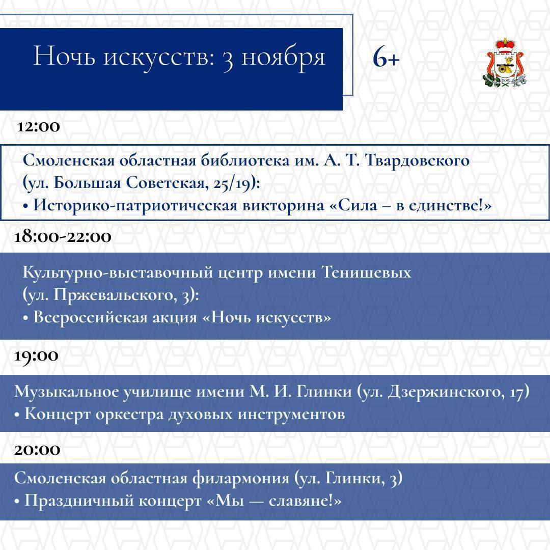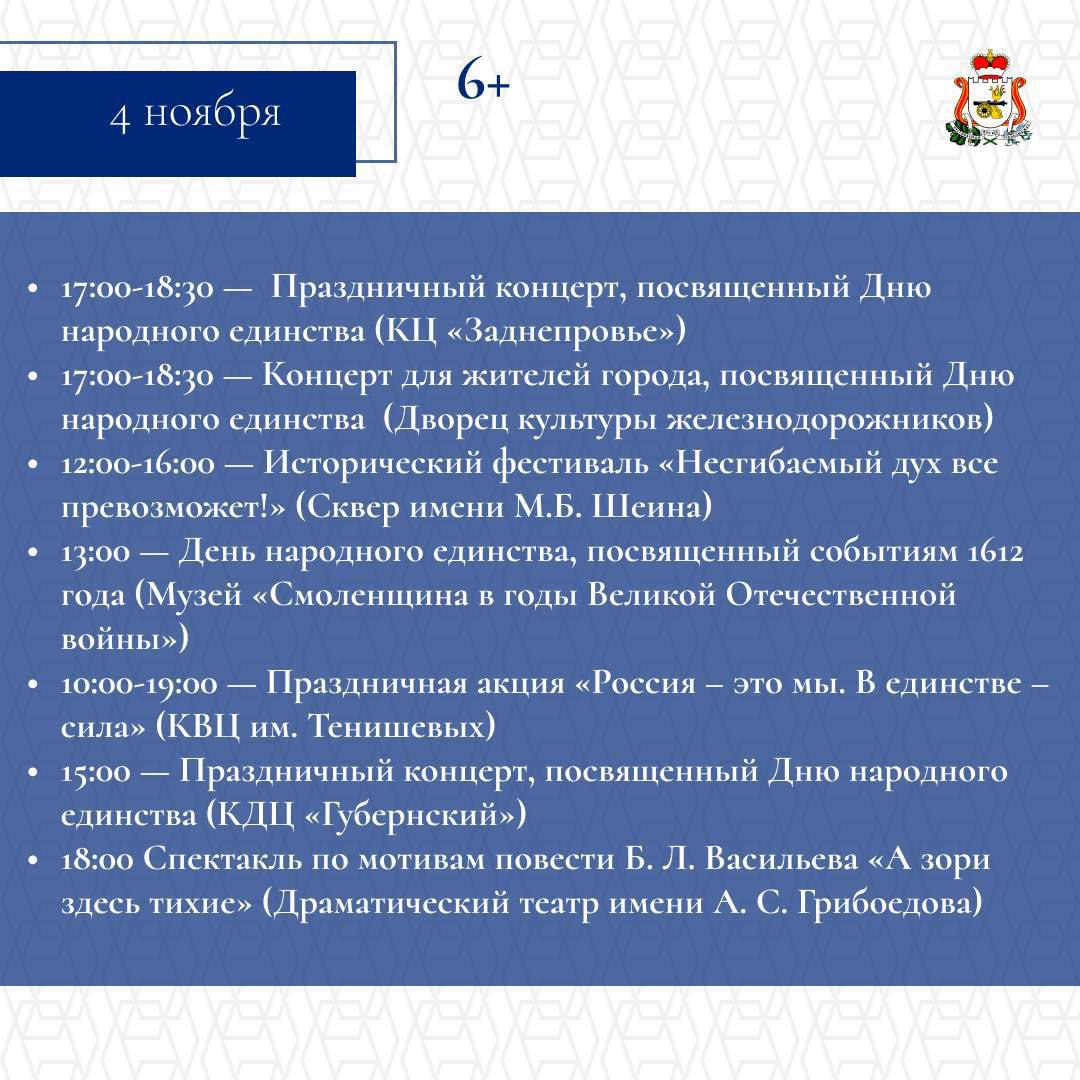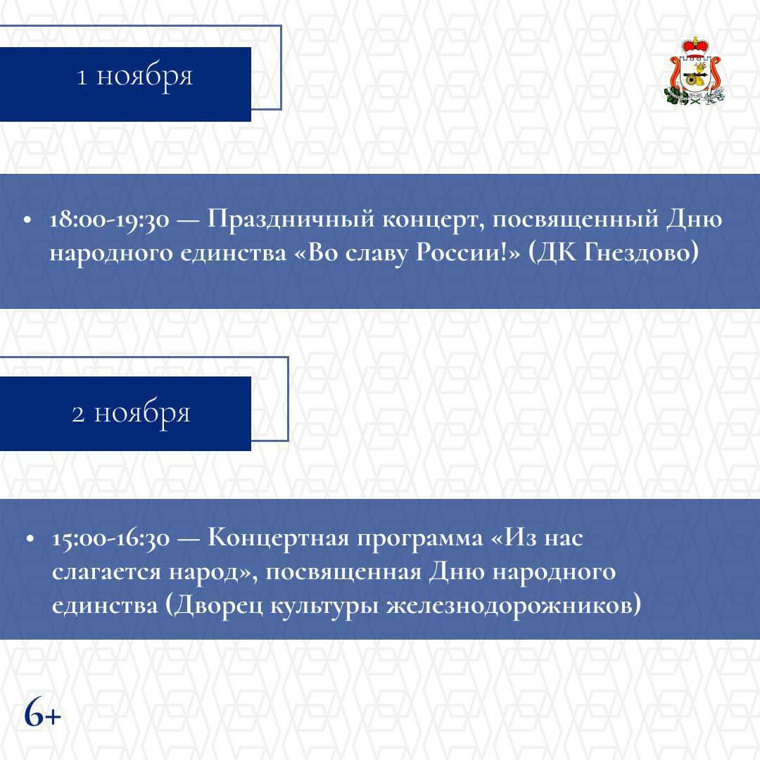 В честь Дня народного единства в Смоленской области пройдёт ряд мероприятий - как торжественных, так и культурных.