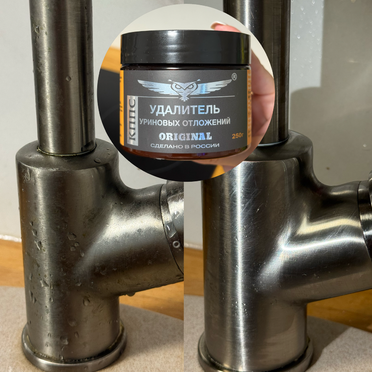 На изображениях видно, какая разница между смесителем до и после использования данного средства. Эффект виден сразу! Этот уникальный продукт помогает: