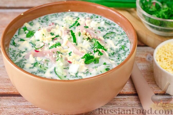 - Окрошка на кефире и минералке: Идеальное летнее блюдо, которое подойдет как на праздник, так и на обед. В основе окрошки — кефир и минералка, что придаёт ей освежающий вкус, а добавление ветчины, огурцов и редиса сделает её сытной и яркой.