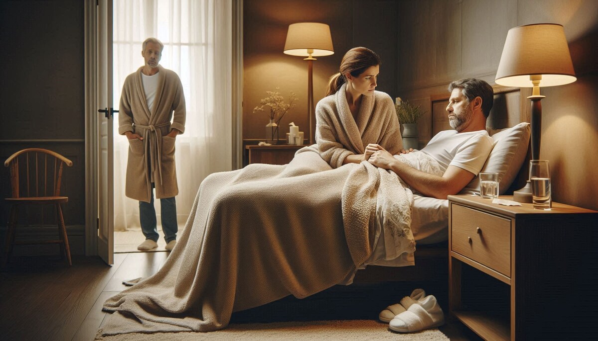 Когда Сергей становится совершенно беспомощным, женщина принимает решение остаться с ним. Она ухаживает за ним и становится свидетелем, как когда-то сильный мужчина превращается в тенистый образ себя. Ее эмоциональное состояние сказывается на здоровье, и она не может сдерживать слезы, когда видит страдания мужа.