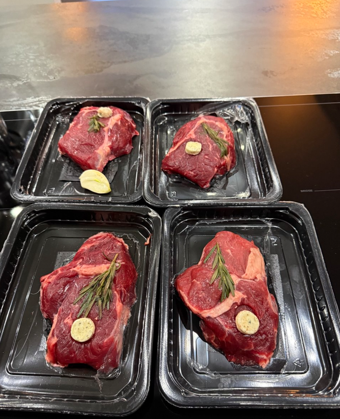 Для начала был выбран рибай — прекрасно мраморные куски говядины, обещающие невероятный вкус и текстуру. За несколько часов до приготовления стейки были выведены из холодильника, что позволяет мясу достичь комнатной температуры. Этот шаг критически важен, чтобы достичь равномерного прогрева при жарке.