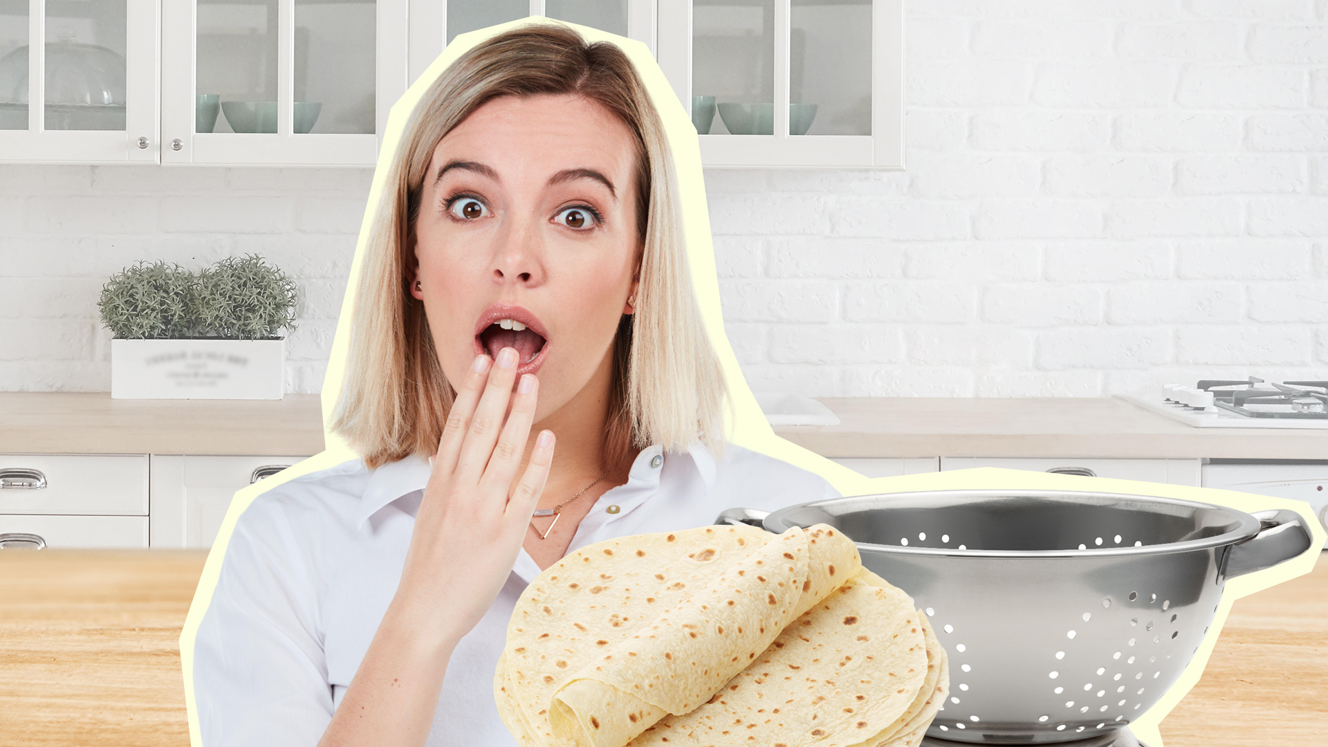 Чеснок мелко режем, смешиваем с рубленной петрушкой и заливаем растопленным сливочным маслом. Духовку нагреваем до 200 градусов и берем дуршлаг. Его округлую часть обматываем полотенцем, на центр кладем смазанный растительным маслом кусочек теста и растягиваем его по поверхности — это и есть секрет тонких лепешек.