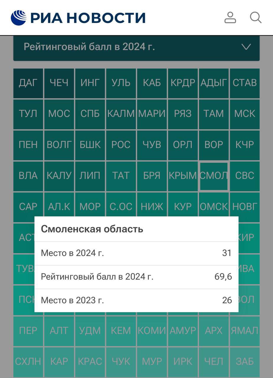 К слову, по сравнению с 2023 годом Смоленщина сбавила темпы ЗОЖ, опустившись на пять пунктов.