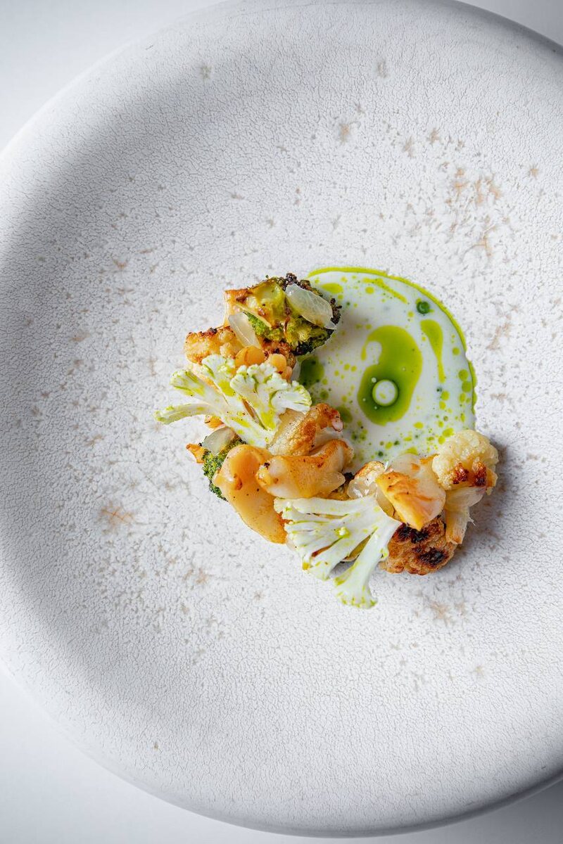 В мире гастрономии с каждым днем появляются все более интересные сочетания вкусов, и новое блюдо, представленное в дегустационном сете ресторана Twins Garden, тому яркий пример. Нежный моллюск, дальневосточный трубач, встречается с копченым сулугуни и запеченной капустой, создавая уникальную кулинарную симфонию.