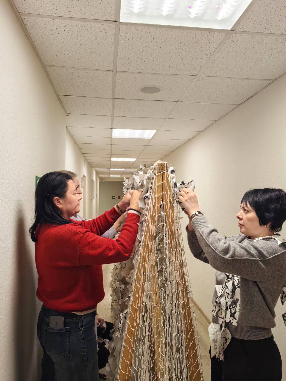 Когда первые морозные ветра касаются земли, предвещая суровую зиму и напоминая о её неотвратимой силе, в сердцах людей пробуждается еще большая забота и волнение за тех, кого хочется пытаться защитить и помочь, кто находится на передовой. В стенах их учреждения, где обычно кипит работа с цифрами и документами, развернулась совершенно иная, но не менее важная деятельность. С самоотверженностью и теплотой в каждом движении, умелые руки казначеев, сплели массивные зимние маскировочные сети.