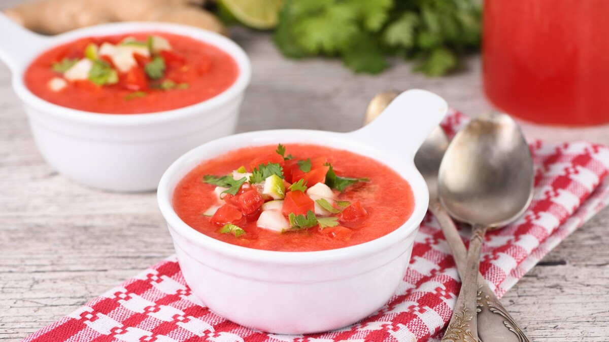 Испанский суп из томатов знают во всем мире. Его любят за легкость приготовления, низкую калорийность и яркость вкуса. Блюдо хорошо есть в жару, после бурной вечеринки или просто на ужин. Вам потребуются: