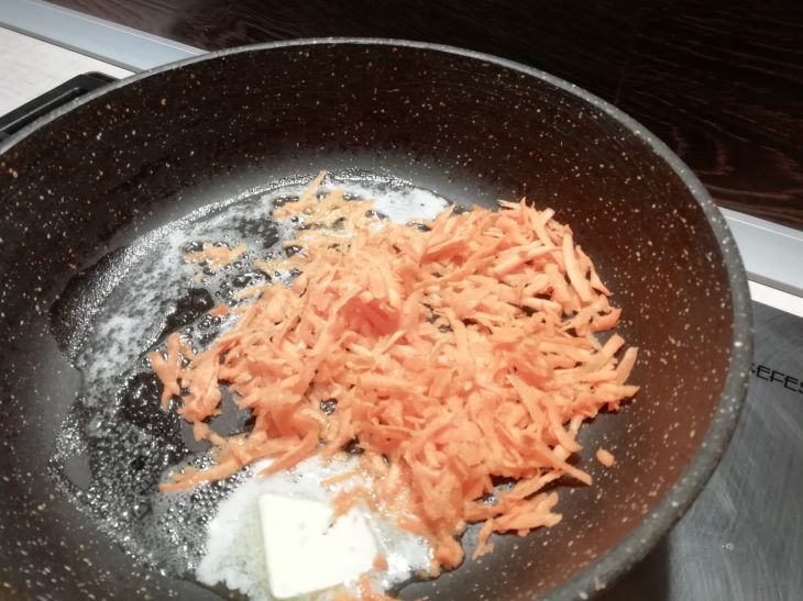 Моркови требуется 7-10 минут — она медленно карамелизуется, выделяя сахара.