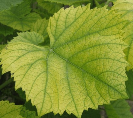 - Неинфекционный хлороз: Этот недуг возникает, когда листовая пластинка винограда теряет свой природный зеленый окрас. Сначала листья становятся светло-зелеными, а затем желтеют, сохраняя зеленые жилки. Это может указывать на недостаток питательных веществ в почве.