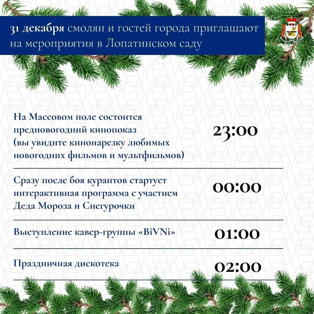 В Смоленске основные гуляния в ночь с 31 декабря на 1 января состоятся в Лопатинском саду.