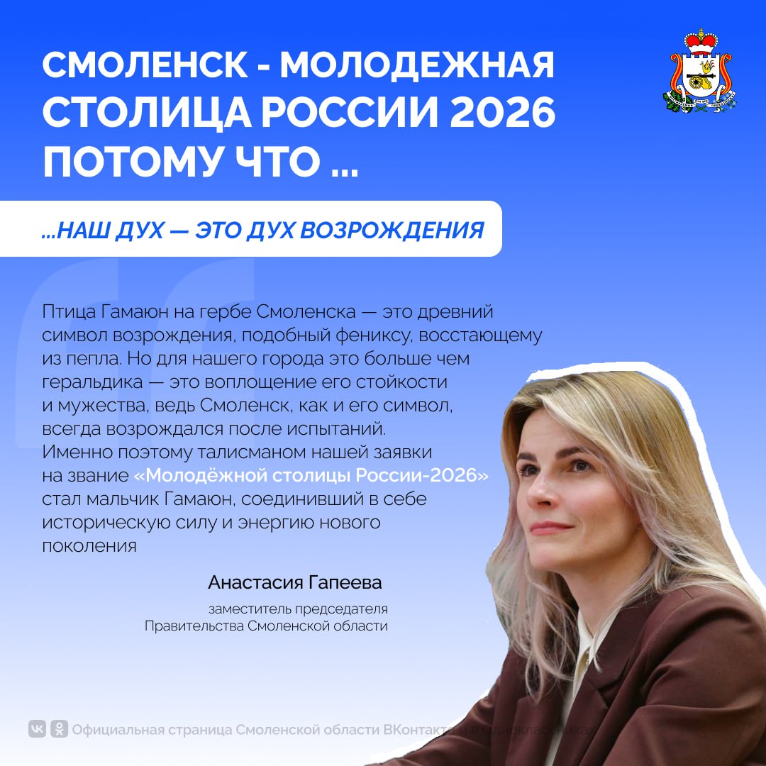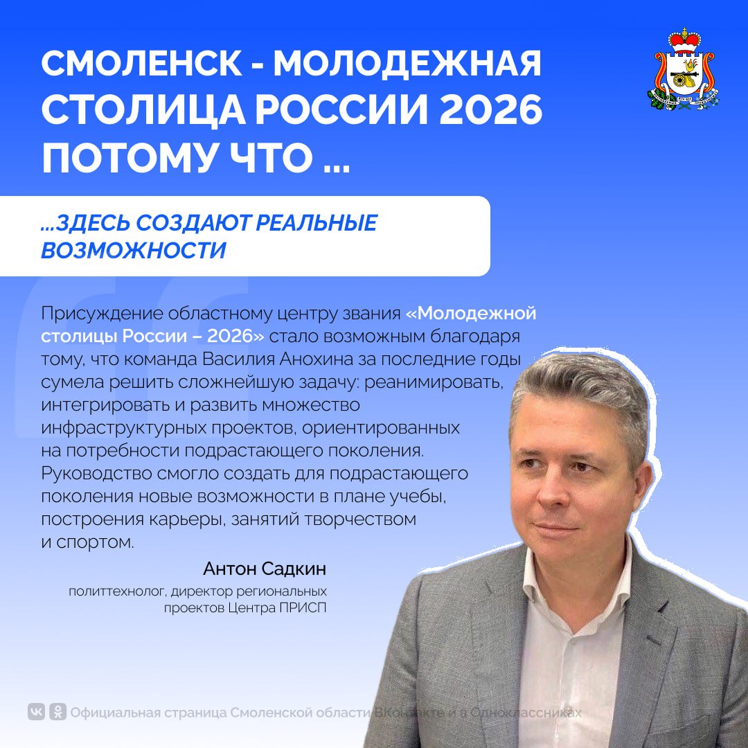 Победа в конкурсе «Время молодых» и статус Молодёжной столицы России 2026 для Смоленска — это больше, чем яркий момент. Это признание на федеральном уровне той системной работы, которая ведётся в регионе, и та колоссальная поддержка, которую нам оказала вся страна.