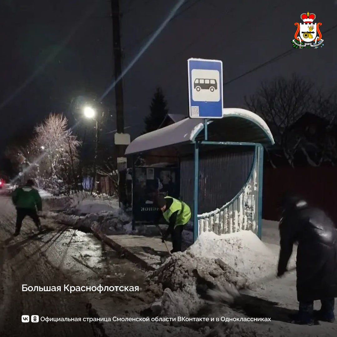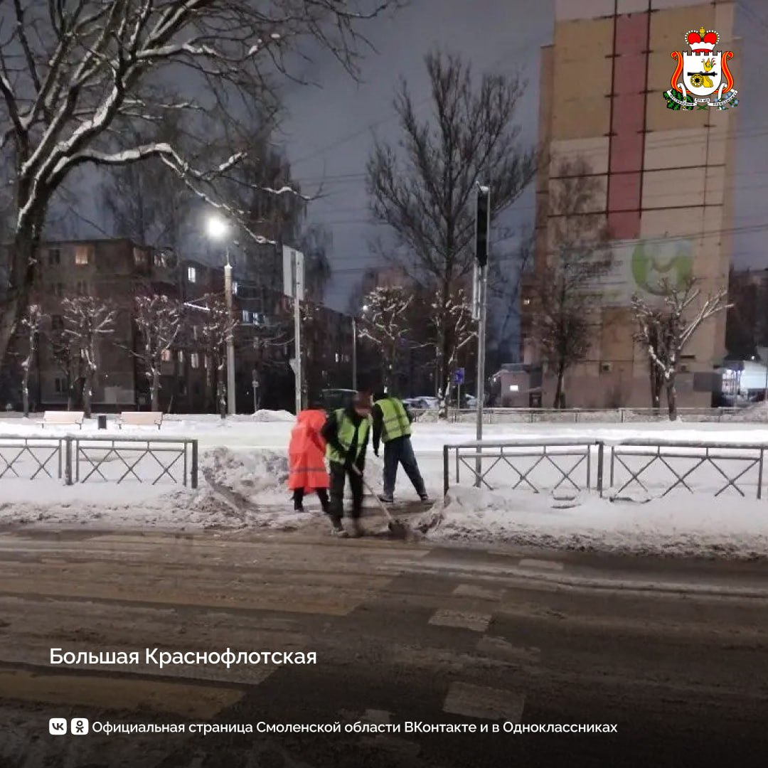 Все службы работают по установленному плану для поддержания чистоты и безопасности на дорогах и улицах Смоленска. Благодарим за труд дорожников и коммунальщиков!