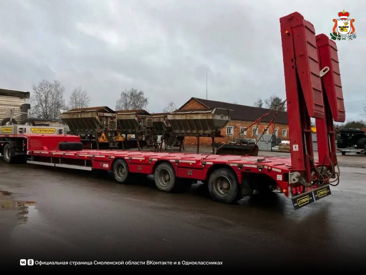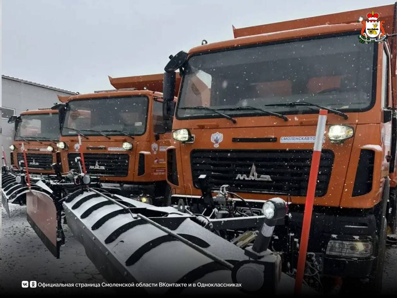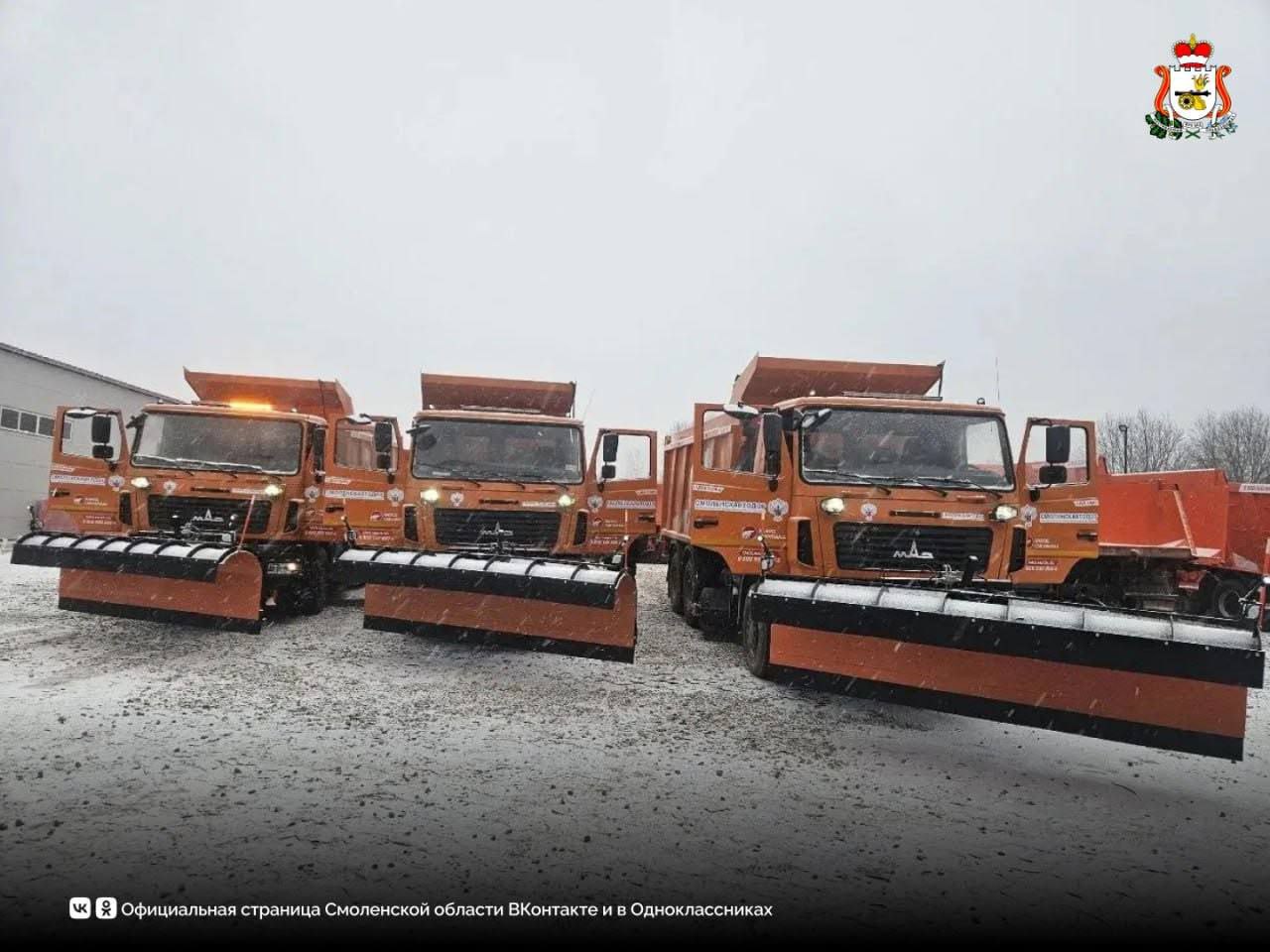 Парк дорожной техники Смоленской области пополнился современными машинами для круглогодичной эксплуатации. По поручению Правительства региона «Смоленскавтодор» приобрел три новые комбинированные дорожные машины (КДМ) на базе МАЗ, а также полуприцеп для перевозки дорожно-строительной и коммунальной техники.