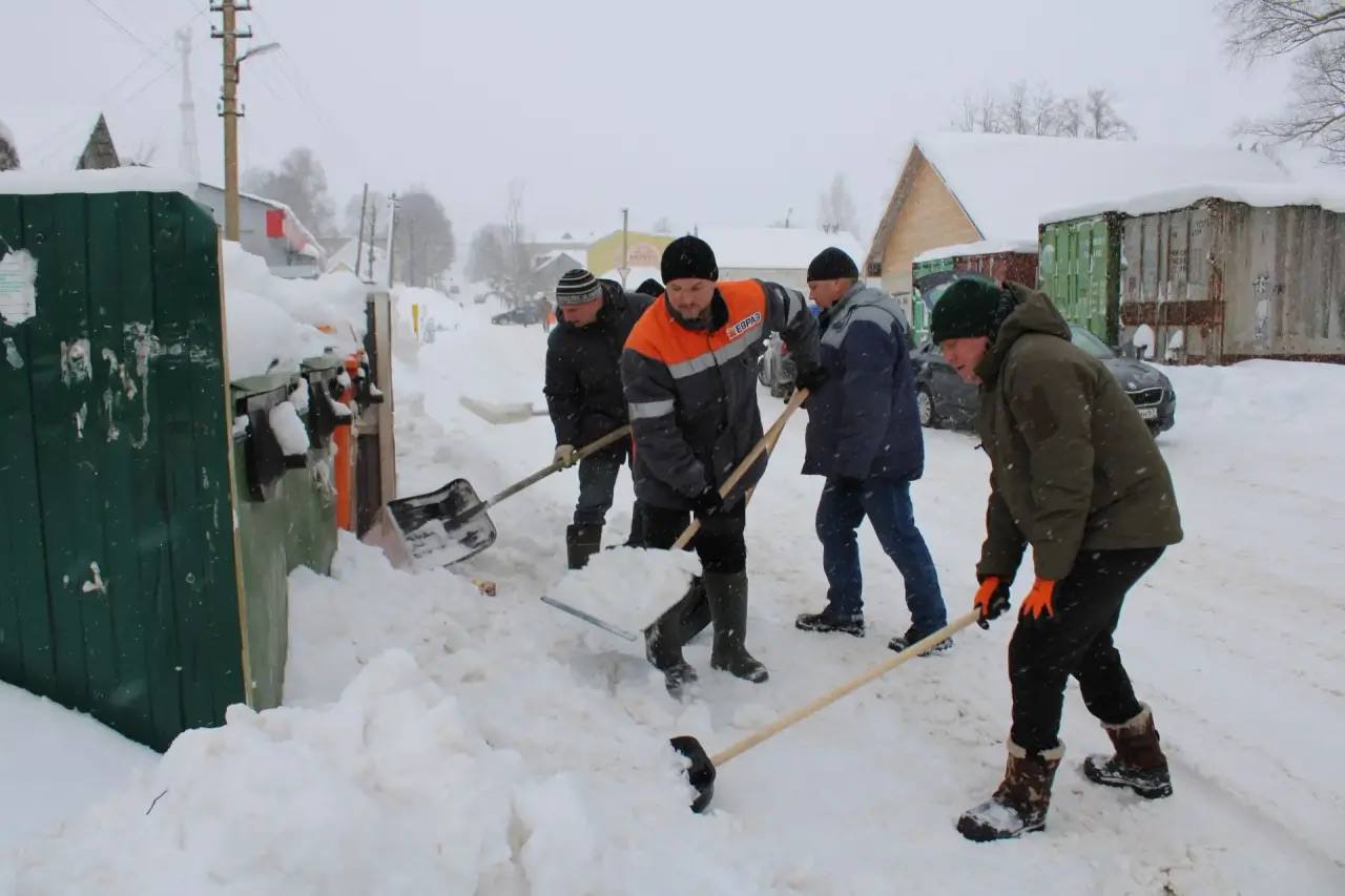 Работают коммунальные службы, задействована также техника предприятий, бизнеса. На дороги выведен весь снегоуборочный транспорт.