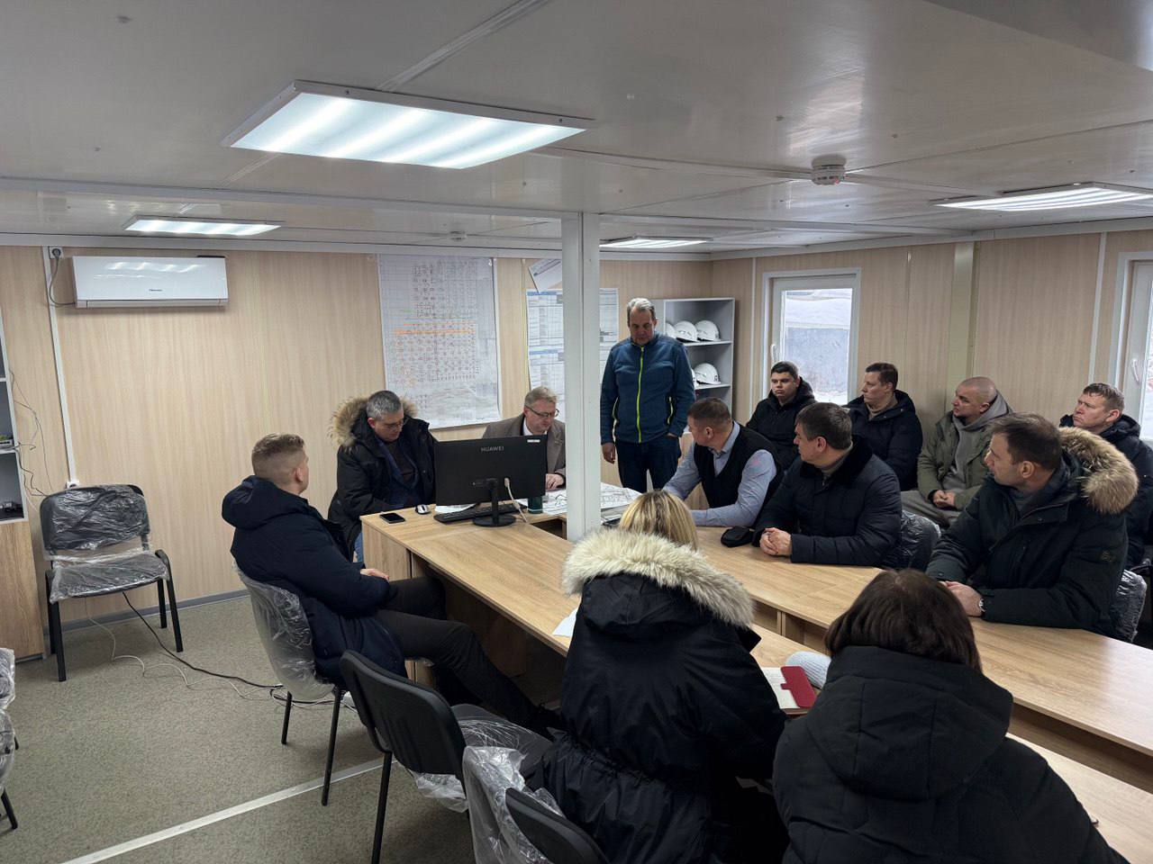 Продолжаем практику еженедельных выездных совещаний на строительной площадке физкультурно-оздоровительного комплекса «Термолэнд-Дельфин». Сегодня прошла первая в этом году рабочая встреча на объекте.