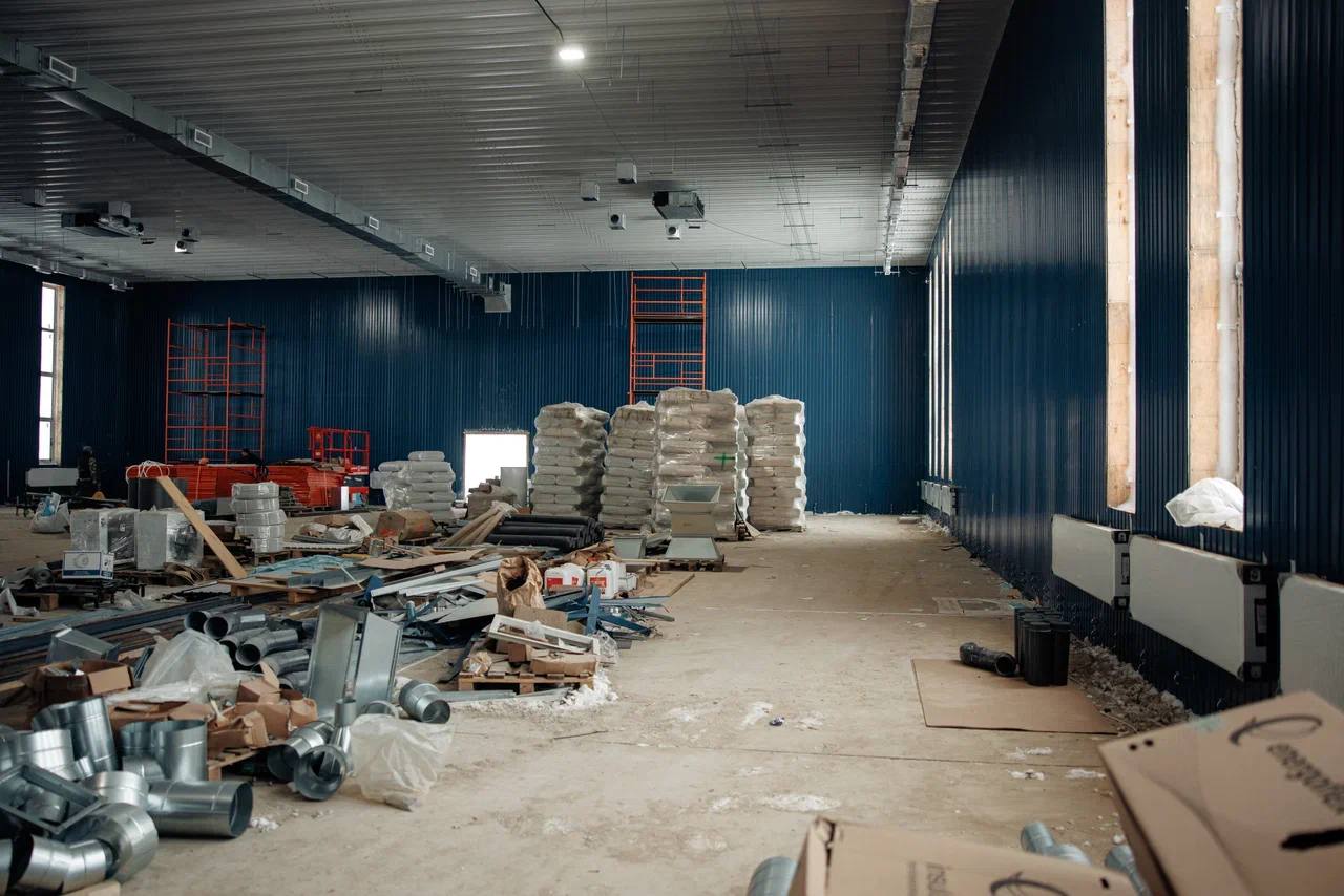 Сейчас идёт внутренняя отделка, планирование помещений и монтаж внутренних сетей. Объект обеспечен электроснабжением по временной схеме. Газоснабжение находится в процессе подключения и будет выполнено ориентировочно за две недели. Из конструктивных работ осталось возвести одно крыльцо — подрядчик выполнит его при улучшении погодных условий.