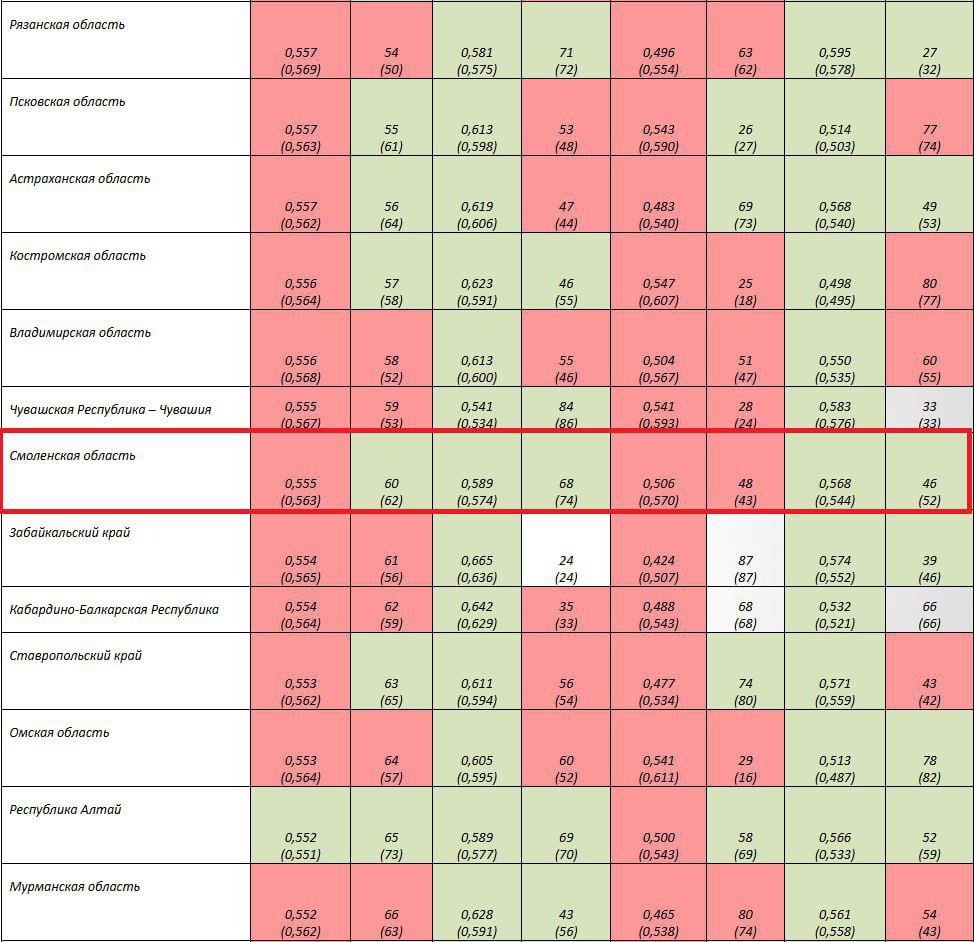 Наш регион оказался на 60-й строчке. Отметим, в 2024 году Смоленщина занимала 62-е место.
