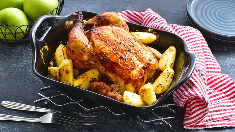 Приготовление курицы с яблоками и корицей