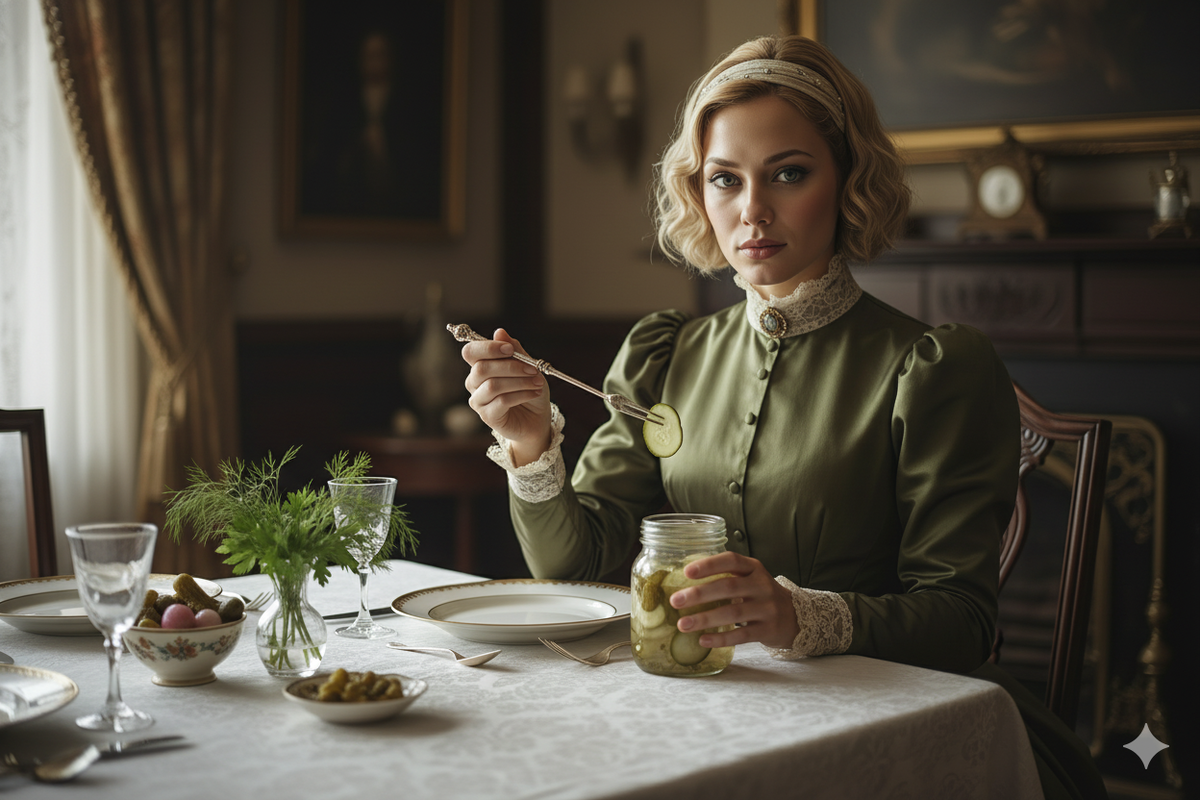 Представьте Англию середины девятнадцатого века, когда соленья занимали почетное место на каждом столе. Огурцы мариновали в немалых количествах — они были популярны как в аристократических домах, так и среди простых людей. Однако извлечь огурец из банки, не залья себя рассолом, было настоящим искусством. В это время на свет появились вилки, изначально простые с коротким черенком, а затем удлиненные с острыми зубцами, которые способствовали ловкому извлечению скользкой закуски. Первые экземпляры, говорят коллекционеры, изготавливались из серебра, становясь настоящим семейным достоянием.