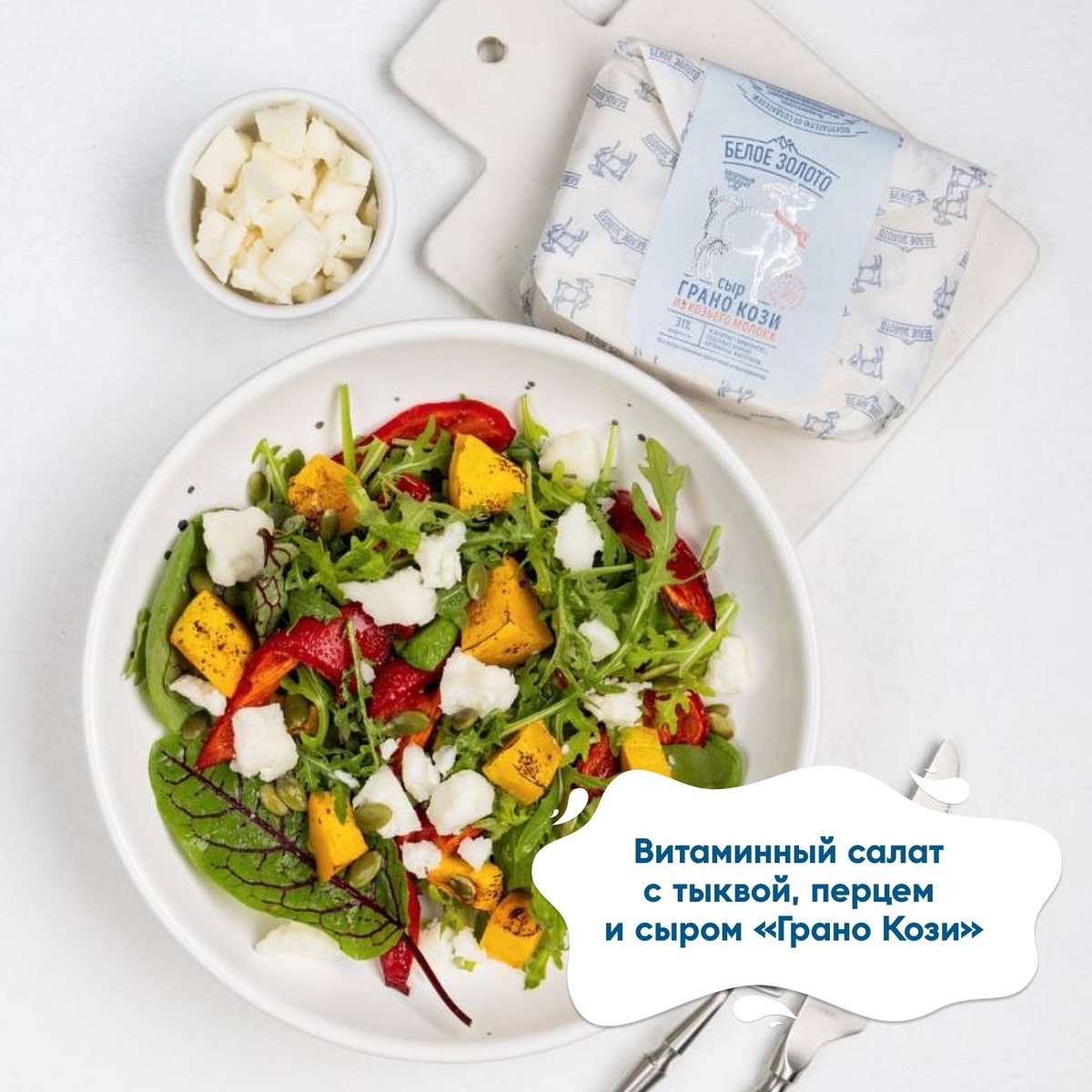 В этом салате время словно замедляется: яркая тыква и зелень создают мягкую основу, на которой спокойно лежит солоноватый козий сыр. Н? придает пикантность, не перегружая вкус; а хрустящие семечки добавляют текстуру и легкую нотку ореха. Такой баланс оттенков делает блюдо удобным для буднего вечера и не требует сложной подготовки.