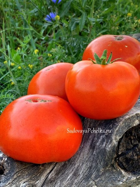 Плодоношение сосредоточено на 4–6 крупных плодах в кисти, масса которых обычно 200–300 граммов. Плоды имеют равномерный красный окрас без плечиков и отличаются плотной, мясистой мякотью, что делает их универсальным выбором для свежего потребления и переработки.
