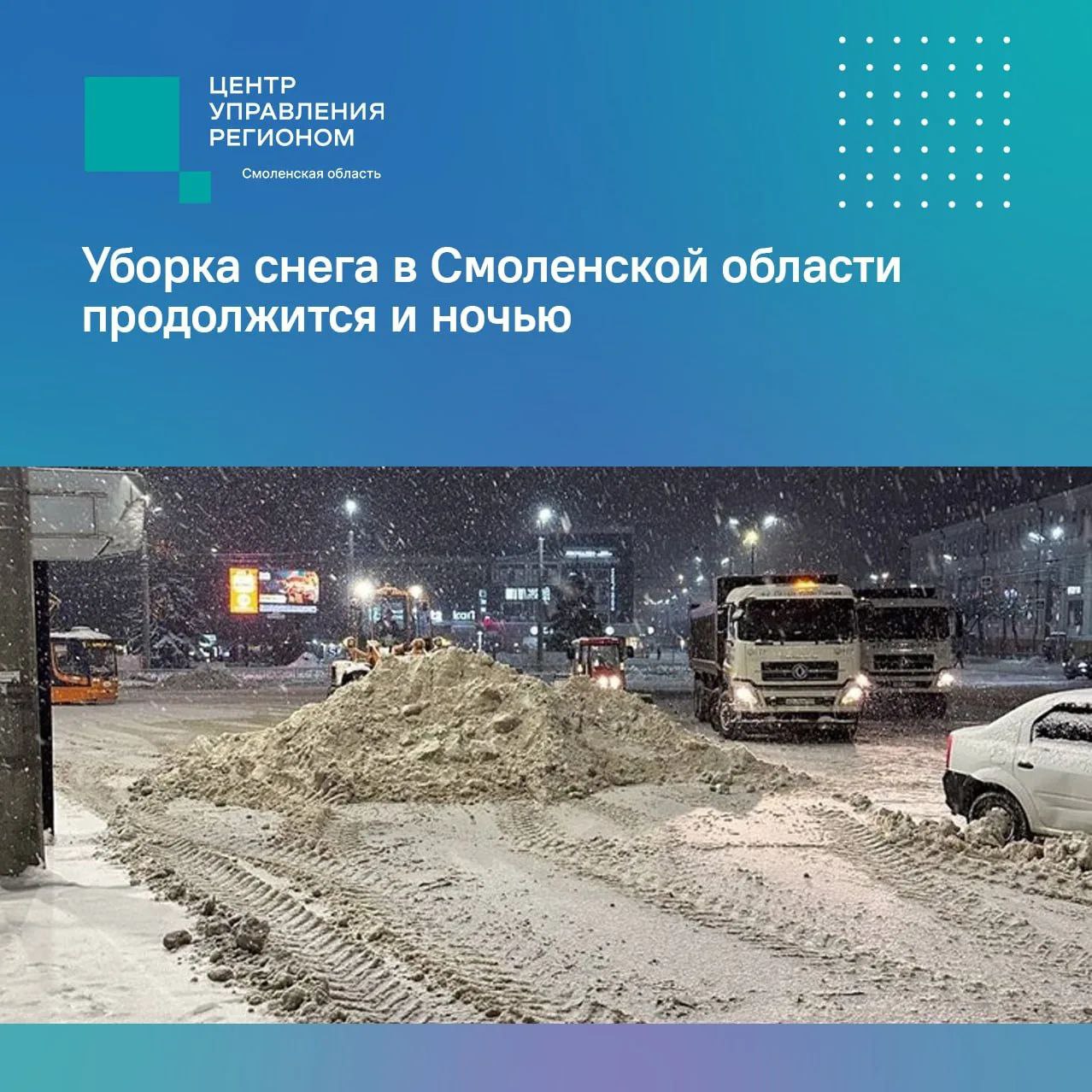 В регионе продолжается уборка снега. Круглосуточно в уборке задействовали более 200 единиц техники. Основные работы проводят ночью, сообщили в «Смоленскавтодоре».