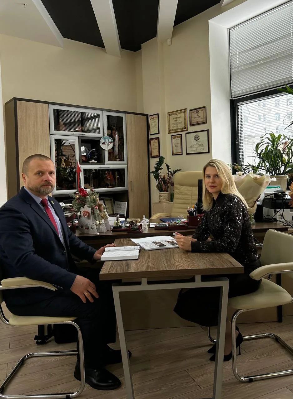 Обучающийся Алексей Новиков встретился с руководителем Смоленской областной организации Всероссийского общества инвалидов, где обсудил вопросы развития адаптивных видов спорта и другие.