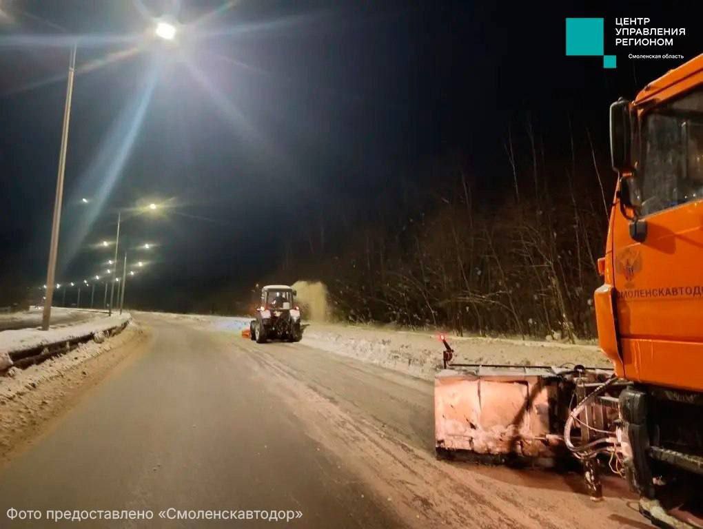Помимо работ в городе, на уборке снега по Смоленской области были задействованы еще более 100 единиц специализированной техники.