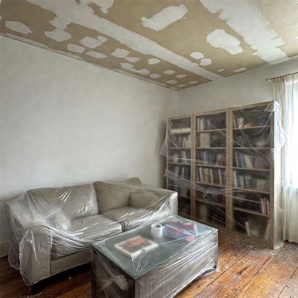 - Обернуть мебель плотной полиэтиленовой пленкой.