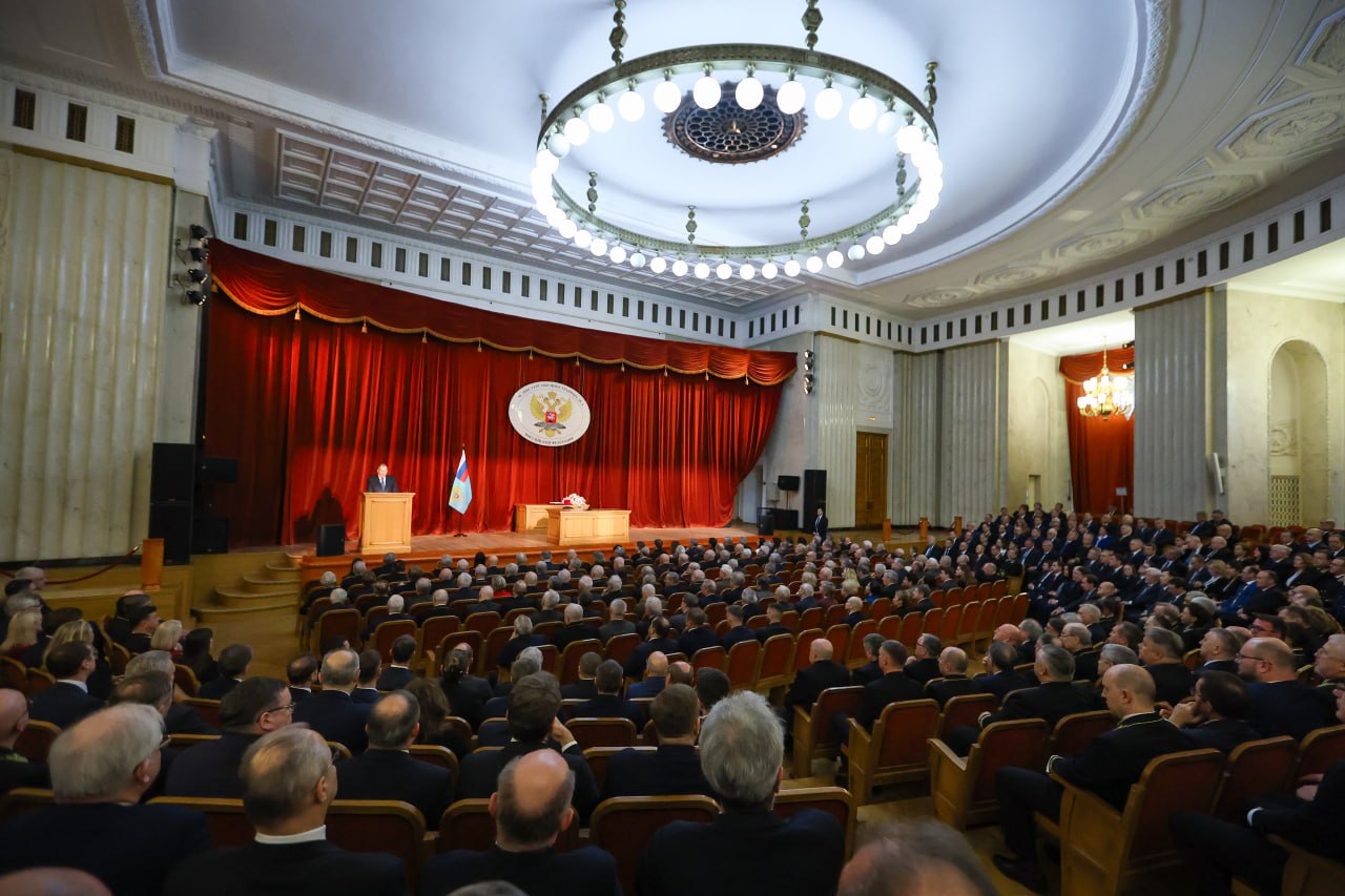 В ходе торжественного собрания, посвящённого профессиональному празднику, С.В.Лавров отметил значительную роль России на международной арене, её вклад в формирование справедливого многополярного миропорядка, защиту целей и принципов Устава ООН.
