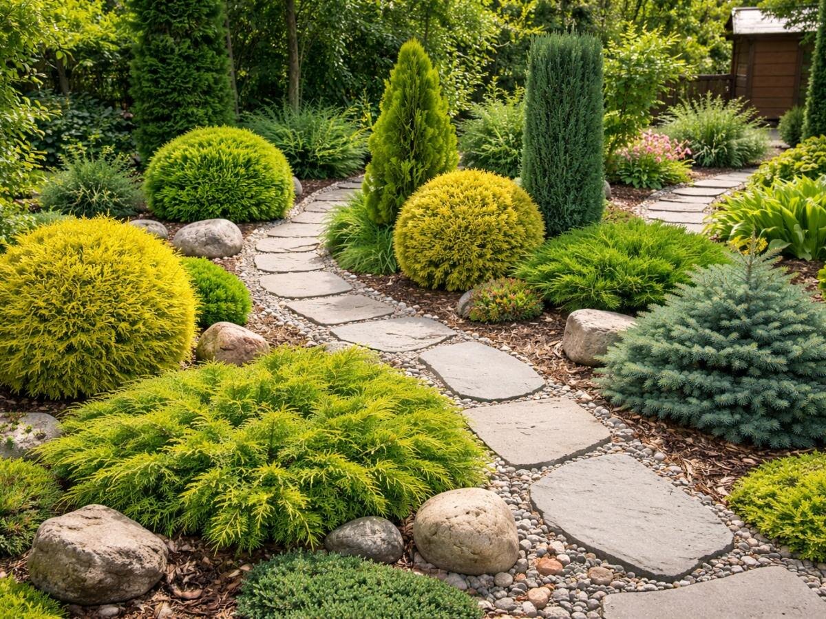 Маленькие хвойники идеально вписываются в сад с любой архитектурой. Они не только структурируют пространство, но и подчеркивают различные зоны: дорожки, газоны и места для отдыха. Эти растения часто используются в близости к теплицам и клумбам, а также могут быть размещены в контейнерах у дома.