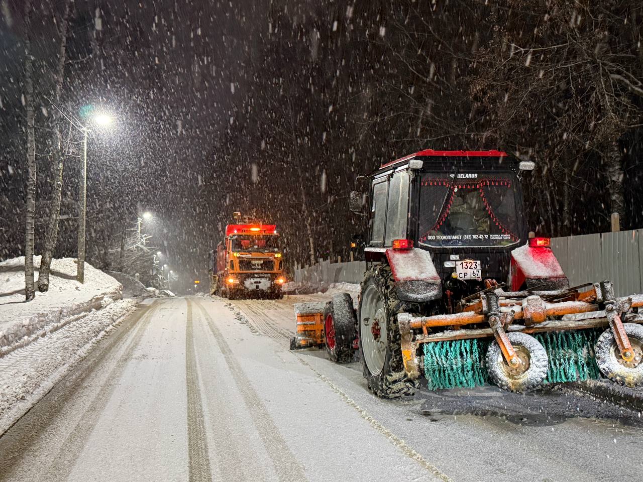 Проехали по ряду улиц, проверили фактическое наличие техники и бригад в соответствии с утверждённым планом. На тротуарах, остановках и пешеходных переходах идёт ручная уборка — сегодня в ночь работают на Маршала Ерёменко, Витебском шоссе, Соболева, Жукова и других улицах. Комбинированные дорожные машины задействованы на всех основных магистралях города: это необходимо, чтобы исключить заносы и обеспечить бесперебойное движение транспорта.