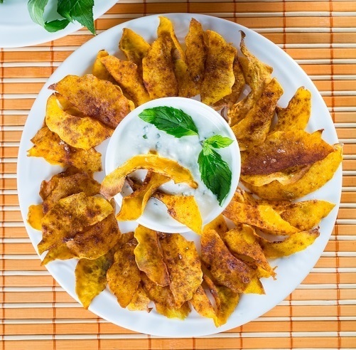 Ищете способ удивить близких новыми закусками? Тыквенные чипсы с мятно-йогуртовым соусом — это то, что вам нужно! Хрустящие, ароматные и полезные, они точно станут хитом вашего застолья. А если хочется разнообразия, так же можно экспериментировать с яблоками или твёрдыми грушами, а специи настраивать по своему желанию.