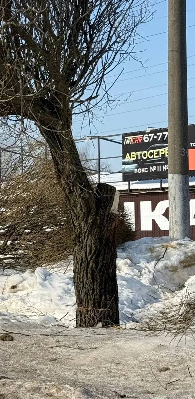 Столкнулись с очередным актом вопиющего вандализма. Неизвестные варварски спилили деревья — шаровидные ивы, которые были высажены в ряд на улице Маршала Ерёменко.