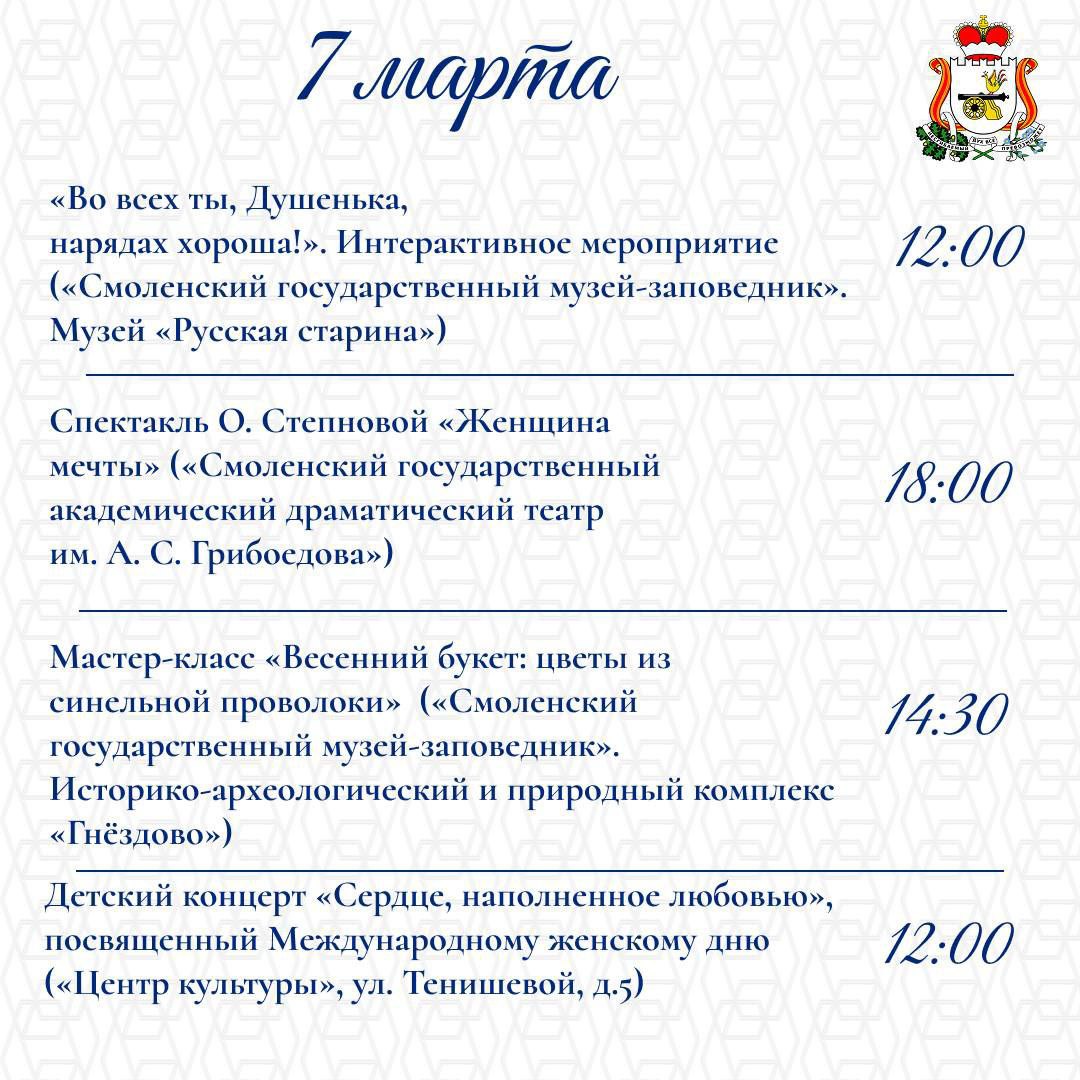 Стала известна программа праздничных мероприятий в Смоленской области к 8 марта