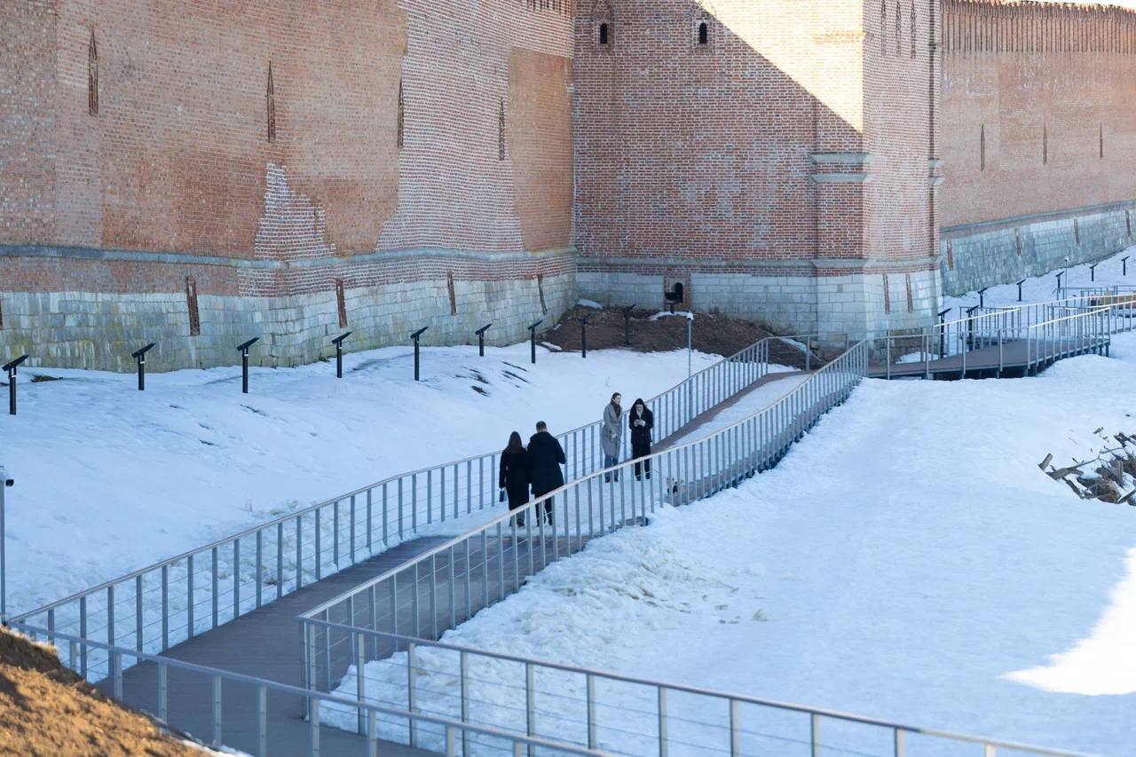 Помимо этого, мы продолжим обустраивать территорию вдоль крепостной стены. На участке от башни Орёл до башни Веселуха появится почти 2000 квадратных метров пешеходного настила из коричневой палубной доски. У улицы Тимирязева деревянная дорожка будет плавно переходить в классический тротуар с подпорной стенкой.