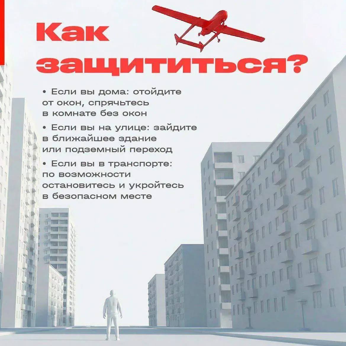 Жителей региона просят соблюдать меры предосторожности: во время работы ПВО не подходить к окнам и не снимать на фото и видео действия военных. При обнаружении частей беспилотников не приближайтесь к ним и сообщите о местоположении по номеру 112.