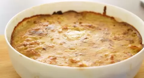 Выложите нарезанную картошку в форму и залейте горячим молочным соусом, который должен равномерно распределиться между ломтиками. Теперь поставьте форму в разогретую до 200 °C духовку в режиме верх + низ и запекайте в течение 35-45 минут. В результате вы получите румяную картошку с кремовым соусом, которая просится на стол.