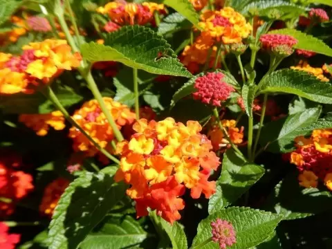 Цитрусовая лантана – это многолетний кустарник, который, оказавшись в тропиках, может вести себя как агрессивный раститель. Сочетание глубоко-зеленых листьев и ярких цветных соцветий в красных, оранжевых и желтых тонах создает зрелищный контраст, который обязательно привлекет опылителей, таких как пчелы и бабочки. Это делает лантану идеальным дополнением для эко-сада.