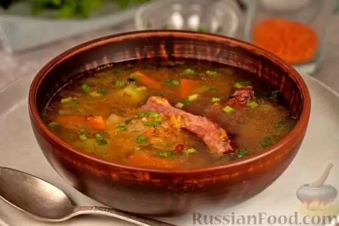 - Тыквенный суп с копчеными ребрышками и чечевицей. Это блюдо сочетает нежность тыквы и насыщенность чечевицы. Копченые ребрышки, отваренные до совершенства, придают неповторимый запах и вкус, превращая обычный суп в настоящую кулинарную находку.